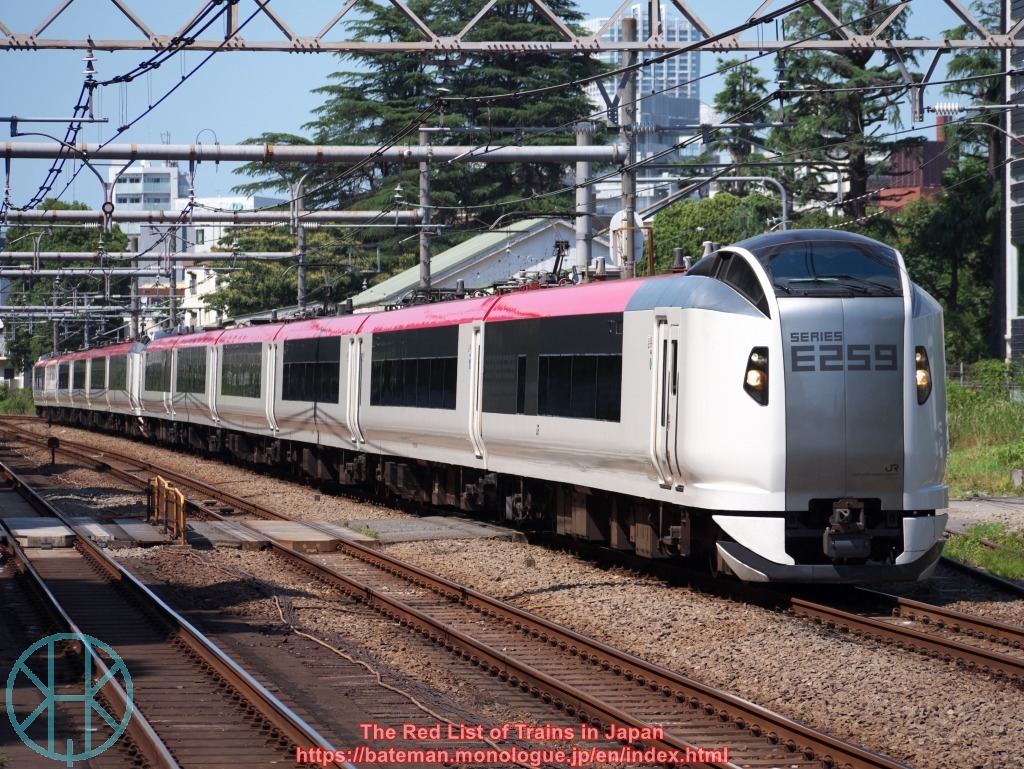 JR East has repainted all units in 2023-24 so that the one in the photo above can no longer be seen. The E259 series has also been used for Shiosai (Tokyo - Choshi), making it extremely confusing for those who want to go from Tokyo station to Narita airport.